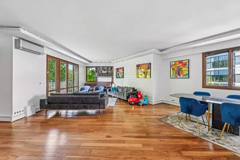 Appartement familial exposé sud-ouest d'une superficie de 159 m², traversant et lumineux, bénéficiant de vues dégagées et de verdure.