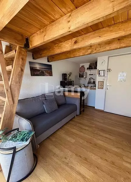 Dans copropriété bien entreteu proche des canaux et centre ville.Aappartement 1 pièce entiérement rénové au 5 et dernier étage avec ascenseur .séjour avec coin kitchenette équipée,salle d'eau fonctionnelle ,mezzanine confortable .Vendu meublé Terrasse exposition sud est avec vue laterale mer .Parking privé en sous sol securisé