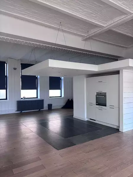 Ce bien est composé d'un grand espace de vie traversant de 103m2 avec une hauteur sous plafond de 3,75m, bénéficiant d'une grande luminosité naturelle et différents espaces pour une cuisine dinatoire, un espace salon, une salle à manger et d'autres possibilités.