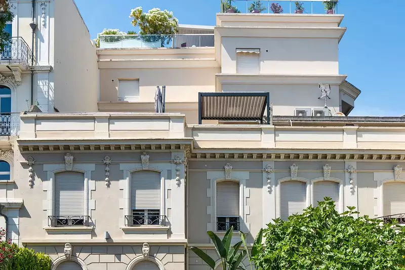 Au sein d'un magnifique hôtel particulier entièrement réhabilité, la Villa Pompadour, à deux pas de toutes les commodités, des plages de la Croisette et de la Rue d’Antibes, une surface exceptionnelle de 162 m² + 140 m² de terrasse est proposée à la vente.