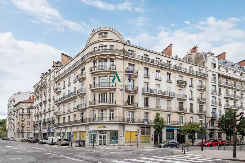 Avenue Félix Viallet, dans un immeuble Art Déco avec ascenseur, très bel appartement de 163m², actuellement configuré en cabinet d'avocats (7 bureaux), mais très facilement réaménageable à usage d'habitation en refaisant une cuisine et une salle de bains, avec la possibilité d'avoir 5 chambres. L'appartement est en partie climatisé, lumineux, avec beaucoup de cachet car on retrouve toutes les prestations et les volumes de l'ancien, hauteur sous plafond, staffs, cheminées...Il bénéficie de 2 très grands galetas (17m² et 12m²) qui sont mitoyens, et d'1grande cave (14m²). A découvrir!