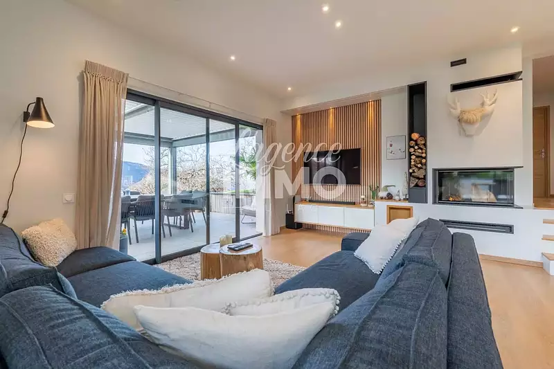 A St-Eustache, à 10 minutes du centre ville de St-Jorioz, au cœur d’un environnement verdoyant, calme et préservé, découvrez cette magnifique villa d'environ 163m², implantée sur un terrain paysager de 887 m², offrant une vue imprenable sur le lac et les montagnes.