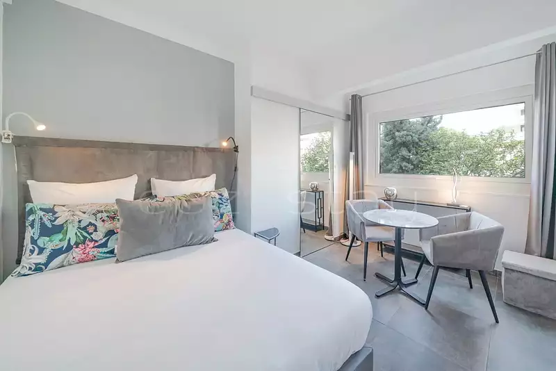 Ce studio est aménagé aussi confortablement qu'une luxueuse chambre d'hôtel et représente le bien idéal pour un pied à terre à proximité immédiate des plages de la Croisette ou pour un investissement locatif.