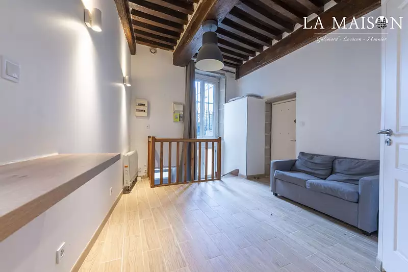 Vous trouverez une pièce de vie lumineuse et sans vis à vis de 14m2 offrant une cuisine aménagée ouverte, une salle d'eau et au niveau inférieur une chambre.