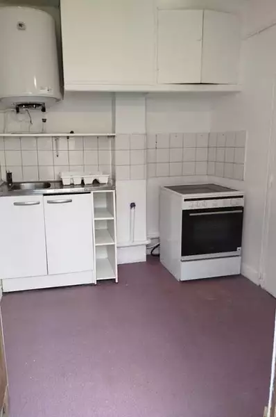 Studio à rénover avec une cuisine, un séjour et une salle de bain à refaire entièrement.
