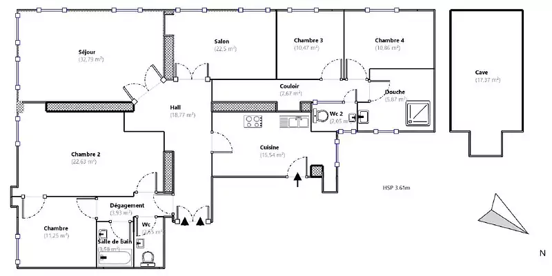 | 170,46 m² - 5 pièces - 4 chambres | Orientation : Sud |