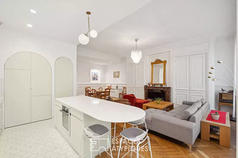 Idéalement situé à quelques pas de la prestigieuse Place Maréchal Lyautey, cet appartement de 171 m², entièrement repensé par un architecte, marie avec élégance le charme de l'ancien et une rénovation contemporaine raffinée. Dès l'entrée, magnifiée par de grandes ouvertures et une belle hauteur sous plafond, le regard est happé par les volumes généreux. Parquet en point de Hongrie, moulures délicates et cheminées d'époque rappellent le cachet historique, tandis que des lignes épurées et des matériaux nobles apportent une touche de modernité. L'espace de vie d'environ 60 m² se compose d'un vaste séjour, d'une salle à manger et d'une superbe cuisine contemporaine, véritable coeur de l'appartement. Cet espace de convivialité s'ouvre sur une cour intérieure arborée, offrant un cadre paisible et intimiste. Côté nuit, la suite parentale est un véritable cocon avec son dressing sur mesure et sa salle d'eau aux finitions soignées. Deux autres chambres spacieuses se partagent une seconde salle de bain à l'esthétique raffinée. A proximité immédiate de la place Lyautey, du métro Foch, et des commerces, ce bien saura ravir les familles en recherche d'un appartement aux volumes généreux et rénové avec soin. Bien soumis au statut de la copropriété : 10 lots Charges annuelles : 1540 euros CLASSE ENERGIE : D - CLASSE CLIMAT : D Montant moyen estimé des dépenses annuelles d'énergie pour un usage standard, établi à partir des prix de l'énergie de l'année 2021, 2022, 2023 (abonnements compris) : entre 2390 et 3280 euros Contact : Clément - 06 68 34 94 29 Copropriété de 10 lots (Pas de procédure en cours). Charges annuelles : 1540 euros. Clément STEVENANT (EI) Agent Commercial - Numéro RSAC : 831 900 626 - Lyon.