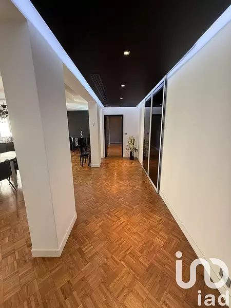 • 1 Entrée vaste de 11,5m2 laissant entrevoir charme et prestations hauts de gamme: faux plafonds design rétro-éclairés, portes miroirs laquées noires, baies vitrées portes fenêtres PVC...