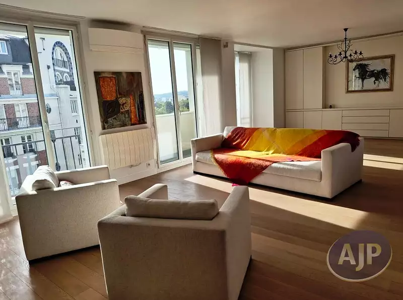 16ème Sud. Porte de Saint-Cloud. Dans une copropriété récente sécurisée et bien tenue. Appartement de réception ou familial au 6ème étage sur 7 avec ascenseur. Entrée desservant le vaste double séjour de plus de 45m² orienté plein Sud donnant sur le balcon filant (14m²), salle à manger indépendante, grande cuisine séparée, aménagée et équipée, buanderie attenante à la cuisine, trois chambres confortables avec rangements dont l'une avec sa salle de bains attenante, salle d'eau, deux dressing, WC séparé. Parfait état. Cave. Gardienne à demeure. (3.85 % honoraires TTC à la charge de l'acquéreur.) Copropriété de 23 lots - dont 18 lots habitation. (Pas de procédure en cours). Charges annuelles : 8900 euros.
