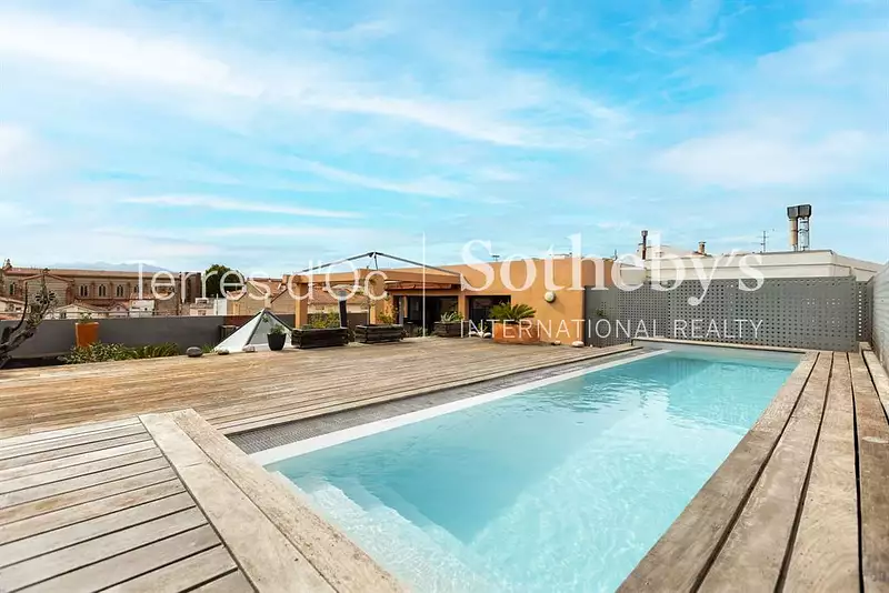 La terrasse de 273m², véritable oasis perchée, offre une vue imprenable sur les toits de la ville et se distingue par sa tranquillité. Accessible via un escalier privatif, elle est idéale pour profiter d’instants privilégiés en extérieur. Un garage de 26m² et une cuisine d’été viennent parfaire ce bien rare.