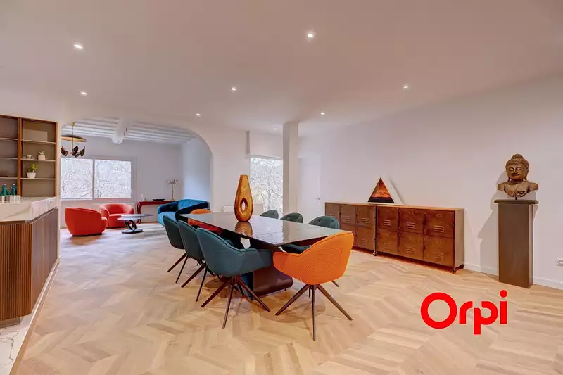 Découvrez ce magnifique appartement, aménagé en rez-de-chaussée d'une villa divisée en trois logements. Une rénovation complète et haut de gamme a transformé cet espace de 174 m² en un véritable havre de paix, combinant design contemporain et matériaux nobles.