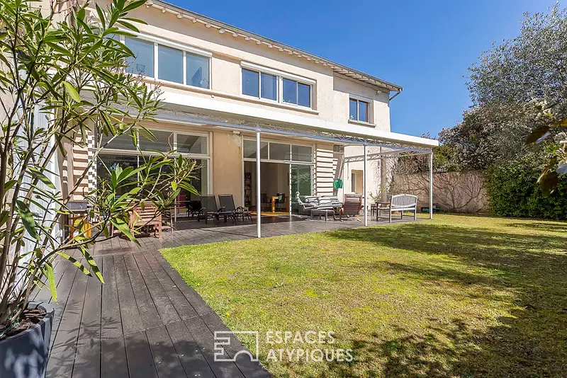 Caché derrière une discrète porte, à l'abri des regards dans un quartier résidentiel prisé de Tassin, ce bien rare de plus de 180m2 se vit comme une maison, au sein d'une petite copropriété intimiste. Dès l'entrée, le charme opère : le jardin, comme un patio secret, avec sa terrasse en bois abritée sous une élégante pergola bioclimatique, prolonge les volumes intérieurs et invite à un art de vivre dedans dehors dès les premiers rayons de soleil. Orientée plein sud, la grande pièce de vie, aux beaux volumes se déploie face à la cuisine ouverte. De plain pied se trouve d'une part, une belle suite parentale avec dressing et salle d'eau; d'autre part, l'espace enfant avec 2 chambres, une salle d'eau, espace bureau ou rangement selon les besoins. Buanderie et arrière cuisine viennent parfaire le confort de ce cocon. Un garage et deux stationnements viennent compléter les prestations. En option, un studio indépendant de 28 m² avec extérieur peut également être acquis : idéal pour un projet locatif, un espace télétravail, un atelier d'artiste ou encore une quatrième chambre selon les envies. Un lieu de vie atypique, au calme absolu, à découvrir comme une parenthèse confidentielle en plein coeur de la vie urbaine. Bien soumis au statut de la copropriété : 7 lots dont 5 lots d'habitation. CLASSE ENERGIE : C / CLASSE CLIMAT : C Montant moyen estimé des dépenses annuelles d'énergie pour un usage standard, établi à partir des prix de l'énergie de l'année 2021 : entre 2460 euros et 3380 euros Contact : Amandine 06 50 86 46 08 Copropriété de 7 lots - dont 5 lots habitation. (Pas de procédure en cours). Charges annuelles : 283 euros. Amandine PERET (EI) Agent Commercial - Numéro RSAC : 949 697 973 - LYON.