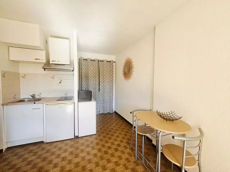 En exclusivité Orpi et rare à Balaruc-Les-Bains , studio à vendre avec PARKING privatif. Idéalement situé dans une résidence au bord de l'étang, cet appartement au 1er étage d'une résidence sécurisée et en bon état se compose d'une pièce de vie climatisée avec kitchenette équipée, une salle d'eau avec douche et wc, plusieurs placards dont un avec emplacement pour le lave-linge (vendu meublé, prêt à etre loué). Vous pourrez rejoindre la piste cyclable et la promenade qui longe l'étang de thau direct en sortant de la résidence. Les commerces sont à 100 mètres.
