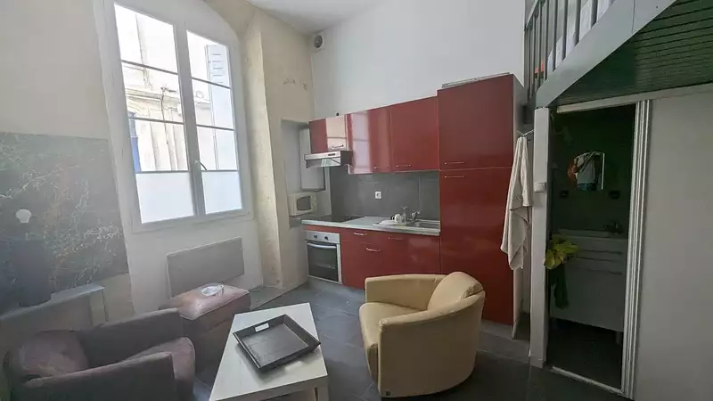 Un studio avec mezzanine (au RDC) d'une surface habitable de 17 m², dans une petite copropriété de 5 lots, intimiste et chaleureuse à Deux pas des quais des Chartrons et de la Garonne.