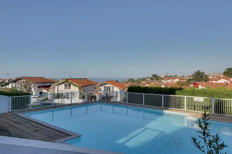 La copropriété fraichement ravalée, est équipée d'un ascenseur et d'une grande piscine .