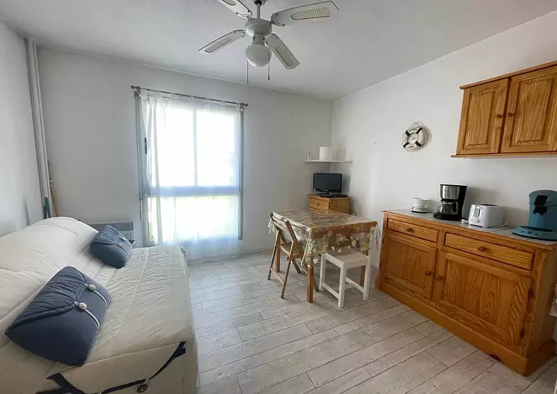 A la recherche d'un pied à terre situé à deux pas de l'Océan ? Venez découvrir cet appartement situé dans une résidence sécurisée et bien entretenue. Face à la réputée plage de Nauzan, ses restaurants et son marché nocturne, ce charmant studio offre une entrée / cabine avec lits superposés, un séjour avec kitchenette et une salle d'eau. Le plus : une place de stationnement privative.