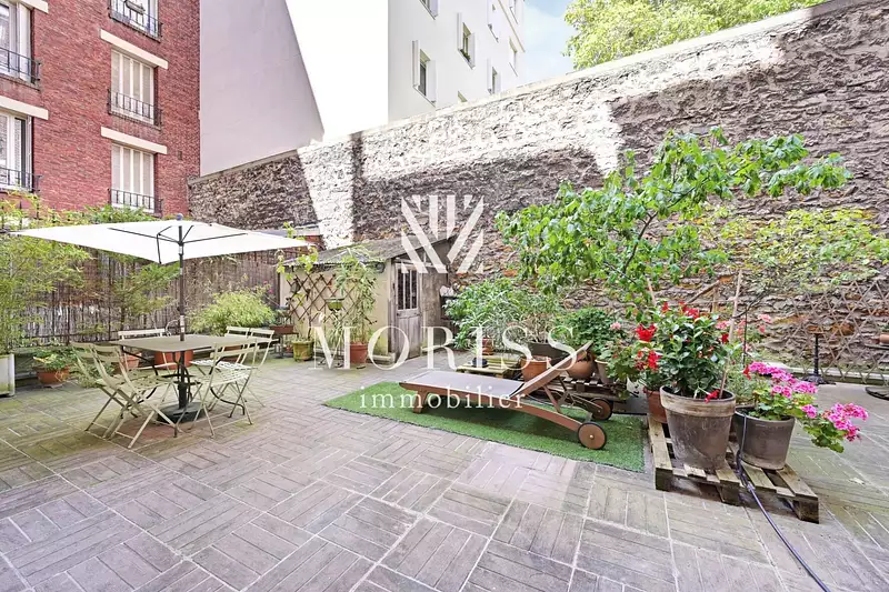 D’une entrée sur un spacieux salon de 45 m² avec cuisine ouverte, aménagée et équipée, 2 belles chambres lumineuses avec vue et accès sur cour privative de 90M2 et un W.C. séparé.