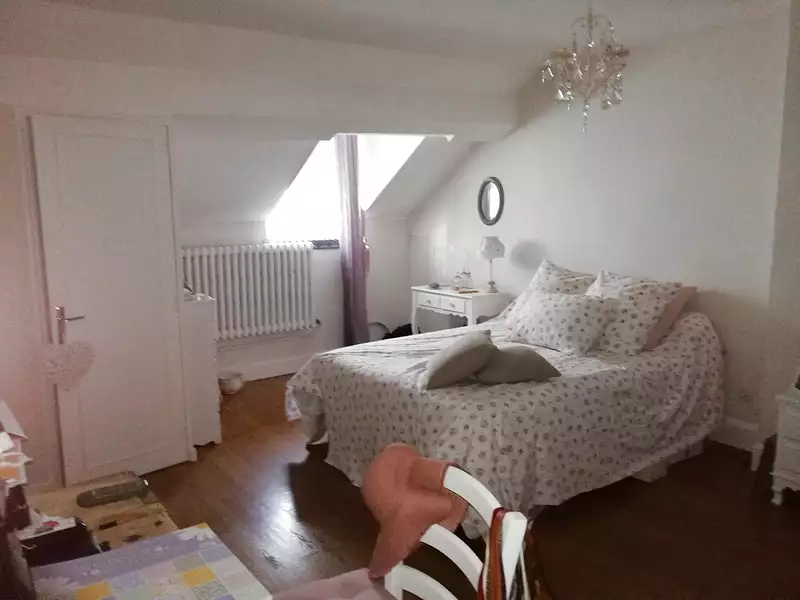 Nevers Place Carnot Parc municipal, centre ville dans petit immeuble sans charges, au 1er étage appartement de 188 m2 avec terrasse en duplex comprenant entrée, salon séjour traversant avec cheminée, cuisine aménagée avec porte fenêtre donnant sur terrasse privative, suite parentale grande chambre avec sa salle d'eau au 2 em étage grand pallier desservant 4 chambres salle de bains wc. Caveron au rez de chaussée dans hall de l'immeuble (local à vélo et rangement) Menuiseries PVC double vitrages, diag DPE 259 Kw/m2/an (E) chauffage central gaz, exposition sud, proche des tous services , commerces et écoles. renseignements actimmo58 tel 0386570079