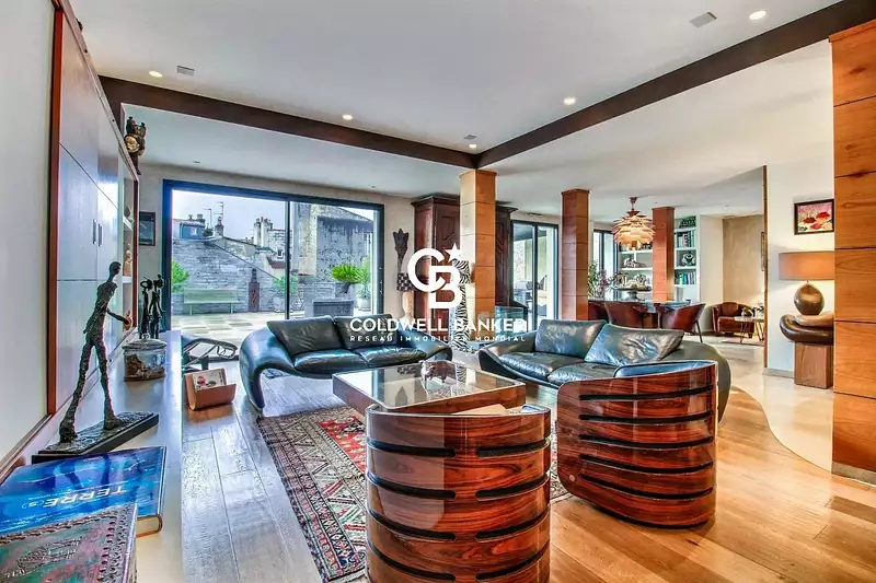 Le vaste espace de réception s’ouvre sur deux terrasses plein ciel, véritables prolongements de l’appartement. L’une d’elles accueille un jacuzzi et un espace détente idéal pour profiter des beaux jours au cœur de la ville.