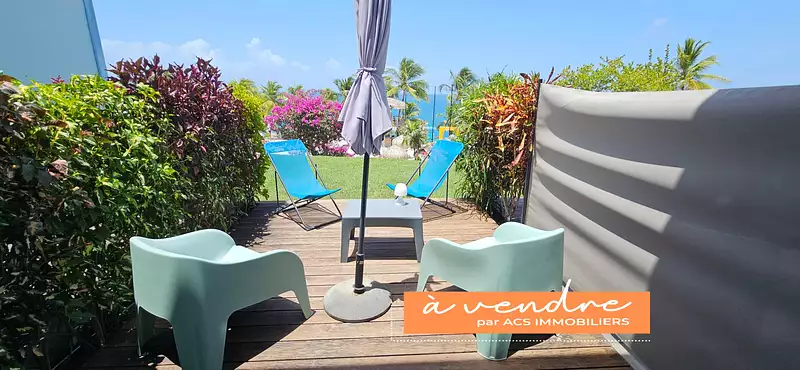 ACS IMMOBILIERS vous propose en exclusivité ce magnifique studio meublé au Diamant, avec vue imprenable sur la mer, offrant une terrasse, un deck ainsi qu'un jardinet.Idéal pour un investissement locatif saisonnier, ce bien, les pieds dans l'eau se trouve dans une résidence touristique très prisée, offrant une forte rentabilité.En parfait état, le studio est vendu entièrement meublé et équipé, prêt à accueillir vos futurs locataires. Il se compose d’une pièce principale climatisée, d’une cuisine aménagée et équipée ouverte sur la terrasse, une salle d’eau avec WC ainsi qu'un deck et un jardinet privatifs.LA résidence offre de nombreux avantages, tels qu’une piscine, un restaurant, un bar, ainsi qu’un grand parking sécurisé avec gardien.