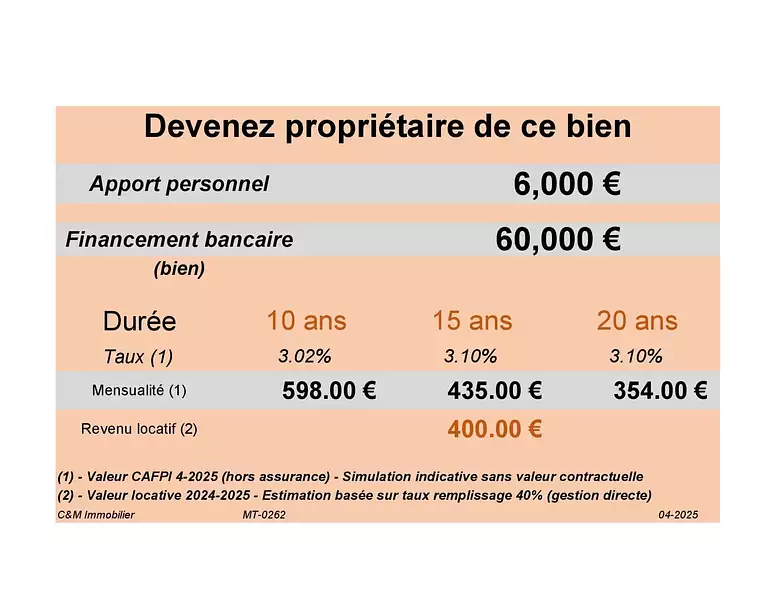 | Prix de vente : 66 000 € | Prix au m² : 3 587 € / m² |