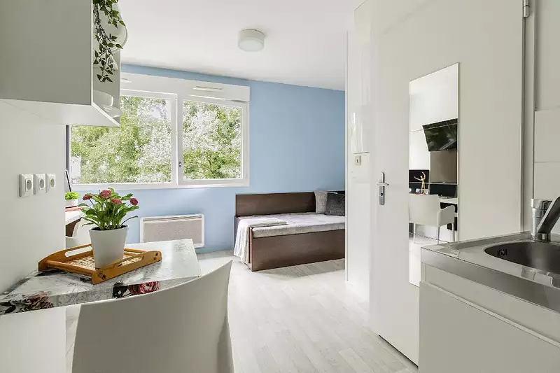 Ce studio de 18,75 m² est situé au deuxième étage d'une résidence étudiante récente, implantée à Nantes dans un environnement calme et bien desservi. L'appartement se compose d'une kitchenette à l'entrée, d'une salle d'eau d'environ 3 m² et d'une pièce de vie optimisée. Le prix moyen au m² dans ce secteur renforce l'intérêt de cette acquisition.