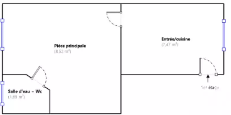 Il se compose d'une pièce principale polyvalente, d'une cuisine à aménager, d'une salle d'eau et d'un WC.
