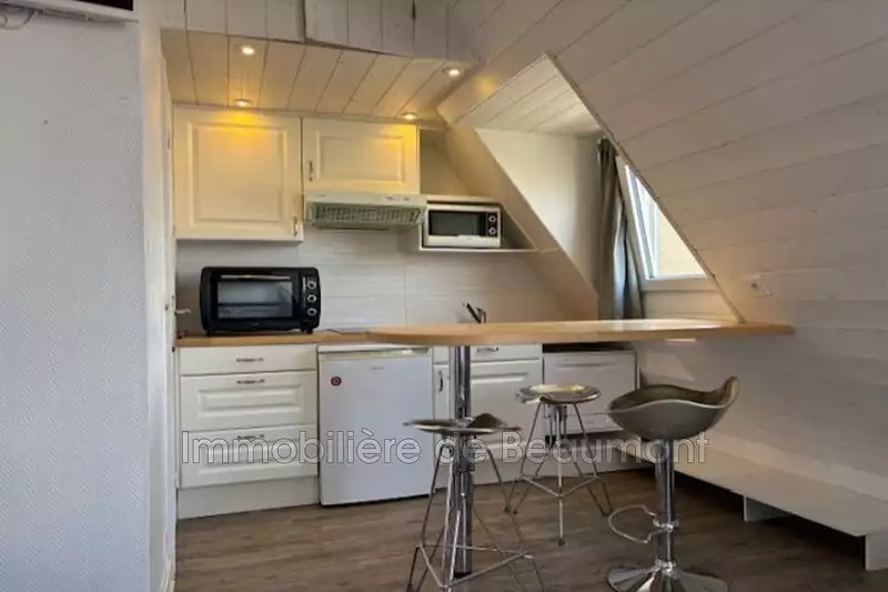 Il offre une pièce de vie lumineuse orientée plein sud, agrémentée d'une cuisine entièrement aménagée et équipée. L'espace a été intelligemment optimisé pour accueillir un coin nuit et la salle d'eau moderne dispose d'un WC sanibroyeur neuf.