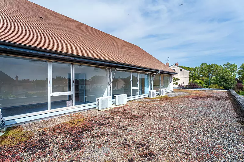 Rare à Beaune, à deux pas du centre historique, quartier lycée viticole. Au 2ème et dernier étage avec ascenseur, découvrez 195 m2 de bureaux ou appartement (prévu dans le règlement de copropriété) avec une terrasse unique de 135 m2 orientée sud et est. Tout est à rénover pour le rendre habitable (arrivée d'eau, évacuation et clim réversible présents) ou pour installer une activité professionnelle, Son agencement et ses volumes ainsi que ses baies vitrées qui apportent une luminosité exceptionnelle avec la vue dégagée sur Beaune en font un lieu aux multiples potentiels. Pour un appartement de grand standing ou votre futur activité, contactez-nous, il vaut le détour ! Copropriété de 42 lots - dont 13 lots habitation. (Pas de procédure en cours). Charges annuelles : 3984 euros.