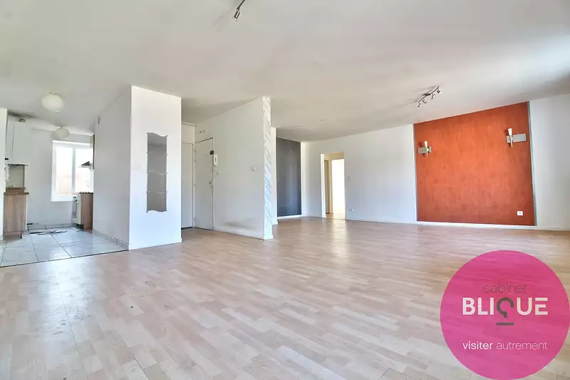 L’appartement dispose d’une grande pièce de vie de 50 m2, deux chambres et une salle de bain. Il demande quelques travaux de remise en état.
