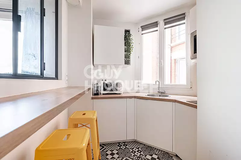 Métro Gabriel Péri Guy Hoquet vous propose ce charmant studio d'environ 20m² situé au 3ème étage sans ascenseur d'une copropriété des années 30 bien entretenue. Il se compose de la manière suivante: une entrée, un séjour, une cuisine séparée et une salle d'eau avec toilettes. Au calme grâce à sa vue sur cour, cet appartement bien agencé est très agréable à vivre. Une cave en sous-sol complète ce bien. A 2 minutes du métro Gabriel Péri et des commerces, cet appartement saura vous séduire par sa luminosité et son emplacement idéal à 5 minutes de Paris. Copropriété de 43 lots (Pas de procédure en cours). Charges annuelles : 1097 euros.