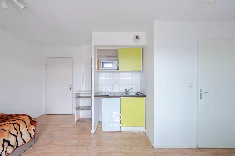 Cet appartement de 19m2 comprend une pièce à vivre ensoleillée avec une kitchenette aménagée et équipée ainsi qu'une salle d'eau avec WC.