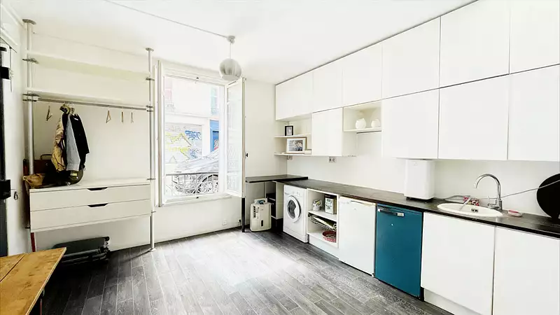 Immopolis vous propose ce studio de 19,39 m², rare et plein de charme, situé dans une rue très calme de Montmartre. Niché en rez-de-chaussée mais aussi dernier étage d'un bel immeuble ancien, il offre une véritable atmosphère de petite maison indépendante. Son plan en open space parfaitement optimisé (aucune perte de place) met en valeur ses beaux volumes : Grande pièce de vie rectangulaire, facile à aménager. Cuisine aménagée spacieuse et conviviale. Salle d'eau et WC séparés type Sanibroyeur. Exposé plein sud, ce bien bénéficie d'une luminosité rare, d'une hauteur sous plafond de 2,79 m, et est au calme tout en restant à deux pas des commerces et de la vie montmartroise. Un studio coup de coeur, à la fois fonctionnel et chaleureux, parfait pour un premier achat, un pied-à-terre ou un investissement locatif. La classe énergétique indiquée dans cette annonce correspond à l'étiquette DPE qui sera en vigueur à compter du 1er janvier 2026, selon la réforme officielle du calcul. Contactez-nous sans attendre pour organiser une visite : ce bien atypique et séduisant ne restera pas longtemps disponible ! Copropriété de 32 lots - dont 15 lots habitation. (Pas de procédure en cours). Charges annuelles : 1212 euros.