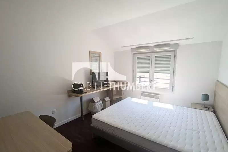 Saint-Etienne hyper centre en exclusivité, spécial investisseurs, studio meublé de 19.48m2 rénové en 2024 ( pour plus de 5 000€ de facture) dans résidence hôtelière en rue piétonne, situé en dernier étage, vendu meublé et en bail commercial, loyer annuel 4 492.40€ soit 374.36€/mois, faibles charges et faibles taxe foncière, 59 000€ Vanessa DESSERT 0651315055 Cabinet Humbert agent commercial indépendant