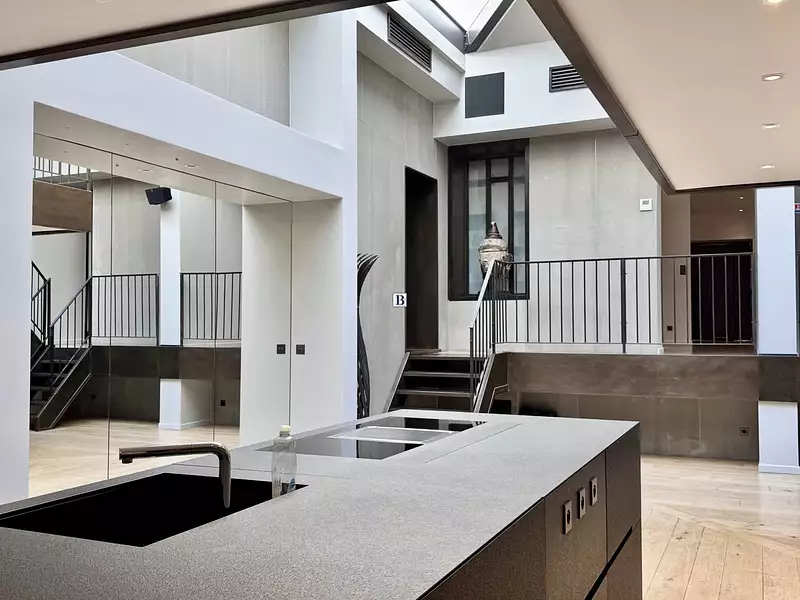 Ce loft de 273 m² (205 m² Loi Carrez) a été entièrement rénové par un architecte et offre de très beaux volumes. Il se compose de trois espaces distincts :