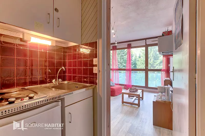 Résidence Euroneige, avec concierge à moins de 200m des pistes de ski. Un appartement studio de 20.26m² avec balcon exposé Sud, vue dégagée sur les montagnes. Capacité totale 4 couchages. Il se compose d'une entrée avec son coin kitchenette, une grande salle de bains avec WC. La pièce principale possède 2 lits escamotable ( un grand lit simple 2 places et un lit superposé, 2 couchages). Vendu meublé avec son local à ski. Très fonctionnel, ce studio est idéal pour profiter de la montagne en famille ou pour réaliser un investissement locatif. Visite virtuelle et plus d'informations sur demande,