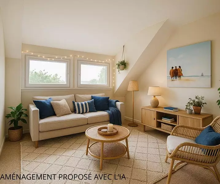 Exposé plein ouest, il bénéficie d'une belle luminosité tout au long de la journée et d'une vue panoramique sur les toits du Pouliguen.