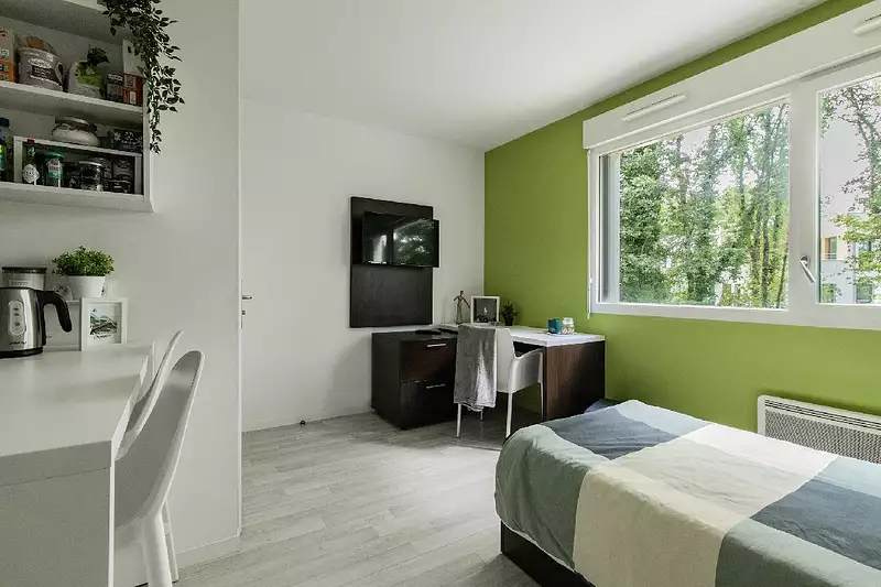 Situé au 1er étage de la résidence étudiante La Rivière à Nantes Nord, ce studio de 20,60 m² est bien agencé, calme et donne sur une agréable zone boisée à l'arrière de la résidence.