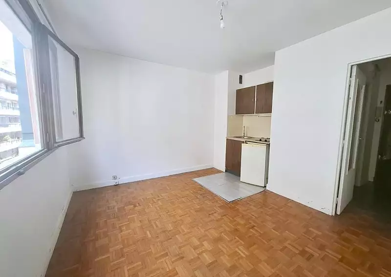 Ce studio bénéficie d'une belle luminosité et d'une organisation très rationnelle. Il s'ouvre sur une entrée disposant d'un grand placard et desservant la pièce principale qui comprend un espace kitchenette. Une salle de bain avec douche, lavabo et wc est suffisamment spacieuse pour accueillir une machine à laver.
