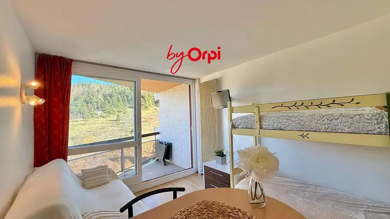 Situé au 4ᵉ étage avec ascenseur, il propose une pièce de vie fonctionnelle avec kitchenette, une salle de bains d'origine et un balcon exposé Nord-Ouest, offrant une vue légèrement dégagée sur le domaine.