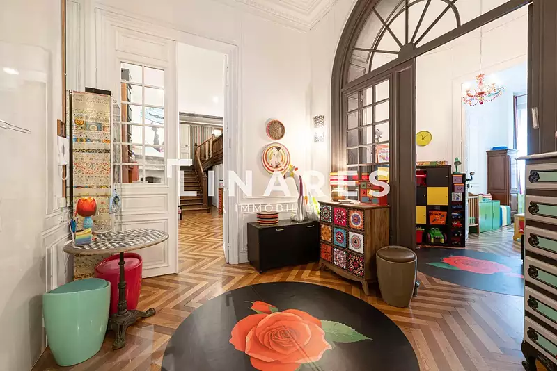 PRESTIGE HAUSSMANIEN - Appartement T4/5 de 211 m2 - 13006 Llinares Immobilier vous présente : PRESTIGE HAUSSMANNIEN, un somptueux appartement T4/5 de 211m², niché entre la place Castellane et le quartier de Lodi, dans le 6? arrondissement de Marseille. Seul sur le palier, il a conservé tout le charme haussmannien : volumes généreux, hauts plafonds ornés de moulures, parquet ancien? chaque détail confère à ce lieu une atmosphère unique, alliant authenticité et raffinement. Dès l'entrée, le regard est attiré par un hall majestueux, pivot, qui distribue avec élégance un double salon/séjour de 68 m² et une cuisine indépendante conviviale. Le coin nuit comprend trois chambres : deux au rez-de-chaussée, dont une suite parentale impressionnante, et une chambre plus intimiste à l'étage, ainsi qu'un espace bureau. Une salle de douche, une buanderie et de nombreux rangements et dressings complètent ce bien. Entièrement climatisé et idéalement situé à deux pas des commerces, des écoles et des transports, il représente une opportunité rare pour ceux qui recherchent élégance, espace et confort au c?ur de Marseille. Une chambre de bonne et une cave viennent parfaire ce bien. Pour ceux qui franchiront le pas, quelques surprises se dévoileront, offrant aux futurs propriétaires des atouts insoupçonnés. Profession libérale autorisée. Possibilité d'acheter meublé.