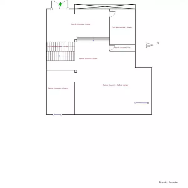 Le rez-de-chaussée dispose d'une entrée avec dressing, d'un bureau, d'un toilette invité, ainsi que d'une cuisine ouverte sur salle à manger.