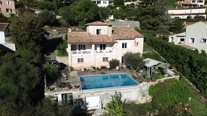 SUPER GATTIERES: Villa provençale avec vue mer – 210 m² – Piscine – Fort potentiel à Gattières