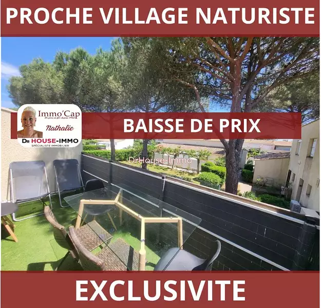BAISSE DE PRIX - EN EXCLUSIVITE PAR L'AGENCE IMMO CAP AVEC NATHALIE , vous propose, Au Cap d'Agde, à 2 pas du village naturiste, dans la pinède au calme, idéal pour un investissement locatif.