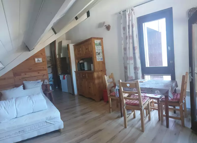 Cet appartement de 29 m² au sol se situe au dernier étage, il est composé d'un coin cuisine, d'une pièce de vie avec fenêtre à l'ouest et d'une cabine avec lit 2 personnes, très jolie vue sur le village. Salle de bains et wc séparés. Les informations sur les risques auxquels ce bien est exposé sont disponibles sur le site Géorisques : www.georisques.gouv.fr Logement à consommation excessive : Classé G. - SUPERI_1764954670