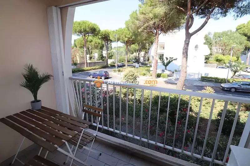 Dans un environnement calme et verdoyant, au 1er étage d'une résidence bien entretenue, ce studio cabine de 27 m² offre une belle vue dégagée sur les jardins. Il se compose d’un coin nuit à l’entrée avec deux lits superposés et rangements, d’une salle d’eau avec WC, ainsi que d’un séjour lumineux avec cuisine équipée, coin repas. Une loggia abritée prolonge agréablement l’espace de vie, idéale pour les repas en extérieur. Le bien est vendu avec une place de stationnement privative en extérieur.