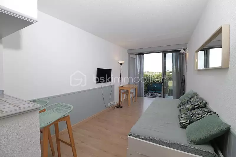 Situé au rez-de-chaussée d'une jolie copropriété recherchée et sécurisée, il se compose d'une entrée cabine 2 couchages, une salle d'eau avec WC, une grande pièce de vie claire et lumineuse avec cuisine aménagée et équipée... Et que dire des extérieurs !! une grande terrasse, offrant une vue sublime sur les jardins et les dunes, vous tend les bras pour vos plus belles journées en famille.