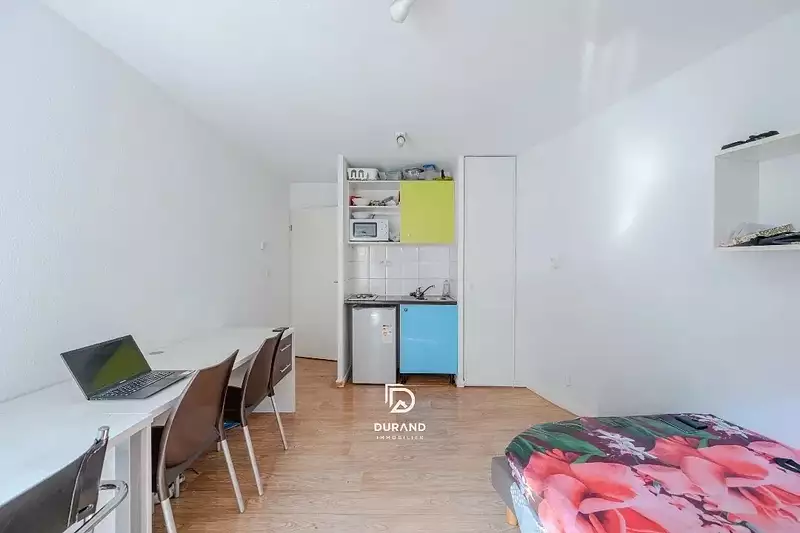 Cet appartement de 21,58m2 comprend une pièce à vivre ensoleillée avec une kitchenette aménagée et équipée ainsi qu'une salle d'eau avec WC.