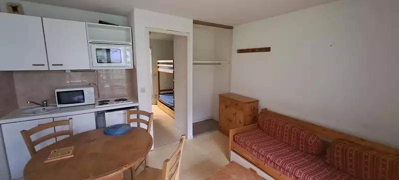 Emplacement privilégié au cœur des Alpes : Situé au pied des pistes de Morillon 1100, ce studio de 21,4 m2 à rénover vous offre l’opportunité de créer un espace à votre image, en pleine nature.