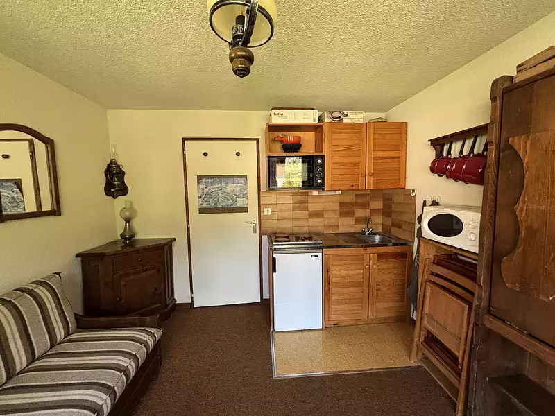 Studio ski aux pieds avec vue imprenable sur les pistes, au premier étage. À votre arrivée, vous serez accueilli par une entrée fonctionnelle avec un spacieux placard et un coin montagne, salle de bains, wc séparés, Le séjour lumineux, baigné de lumière grâce à son exposition plein sud, s’ouvre sur un balcon offrant une vue magnifique sur les pistes. Cet appartement est vendu meublé avec un casier à ski
